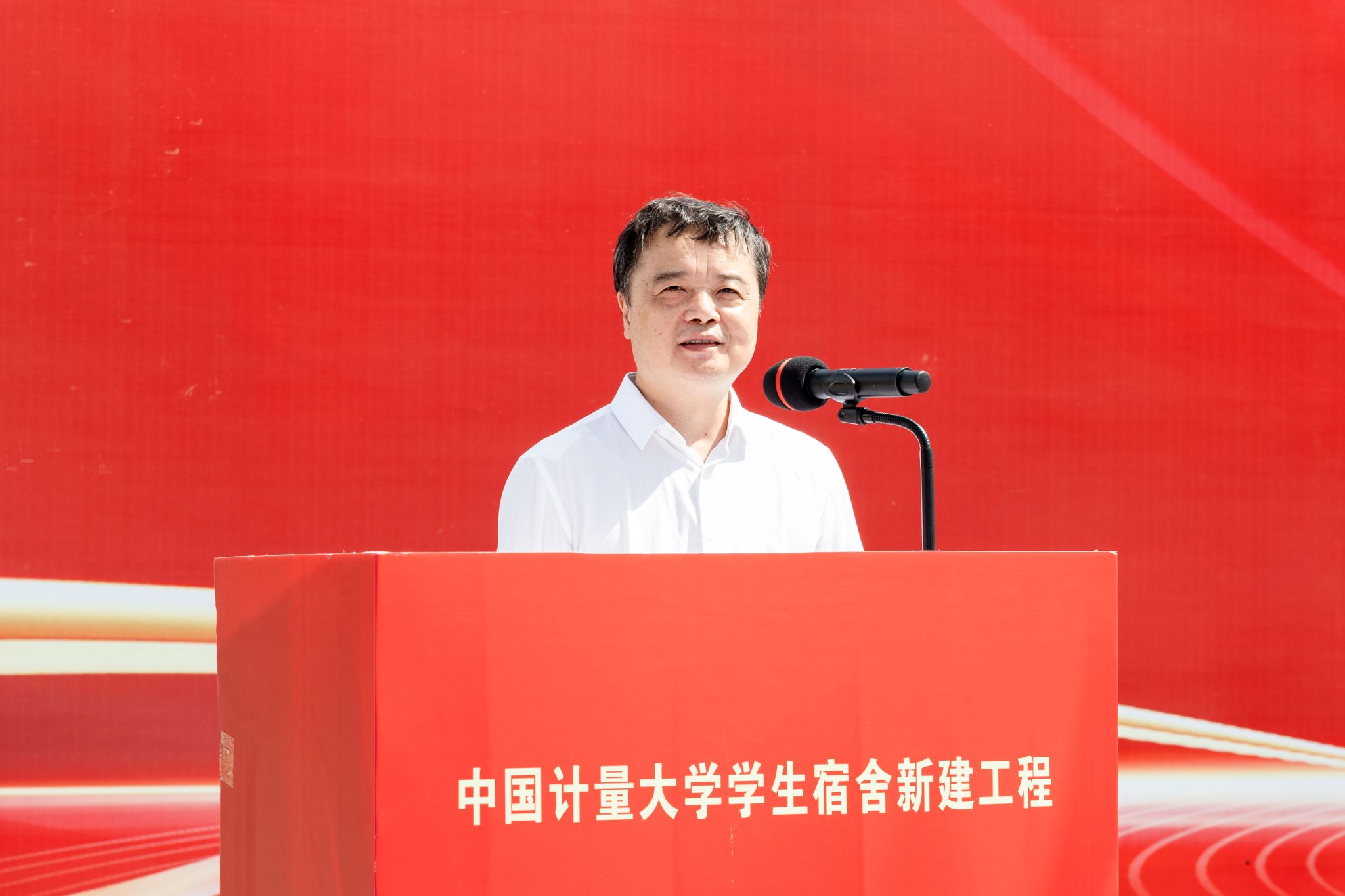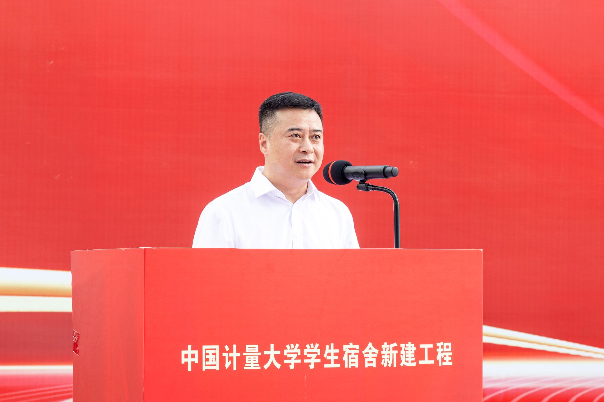 校党委书记徐江荣宣布中国计量大学学生宿舍新建工程正式开工。