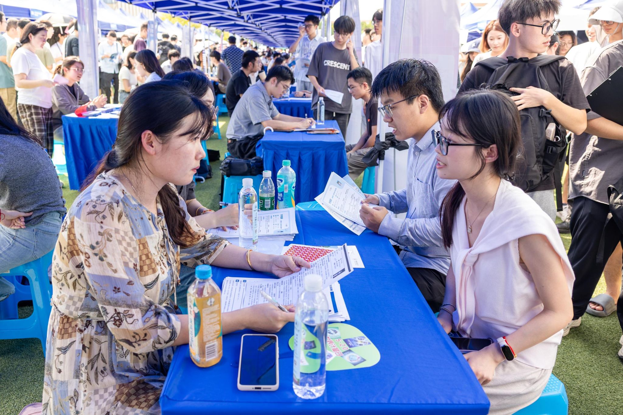 9月19日,2025年“千企万岗 职引未来”中国计量大学秋季大型校园招聘会在学校西区南操场顺利举行。现场人潮涌动,气氛热烈,众多毕业生手持精心准备的简历,积极穿梭于各企业展位之间。校党委书记徐江荣、党委副书记程刚来到现场与企业代表和毕业生亲切交流,详细了解用人需求,鼓励学生积极应聘、理性择业。