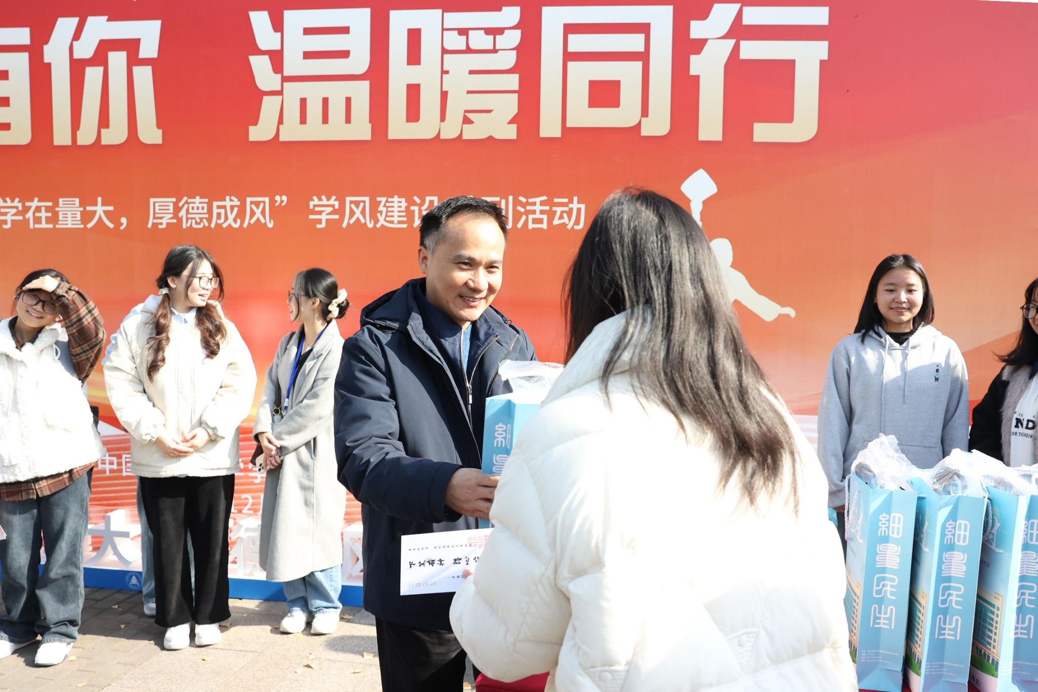 据悉,本次活动是我校2025年“学在量大,厚德成风”学风建设系列活动的重要组成部分。此次慰问活动以务实而温馨的举措,生动体现了我校“以生为本”的育人理念,作为学风建设的重要一环,学校将持续通过营造优良学风、优化学习环境、提供全过程备考支持,系统构建助力学生深造发展的长效机制。自11月中下旬起,材料与化学学院、生命科学学院、信息工程学院等学院也已陆续开展形式多样的考研慰问活动。